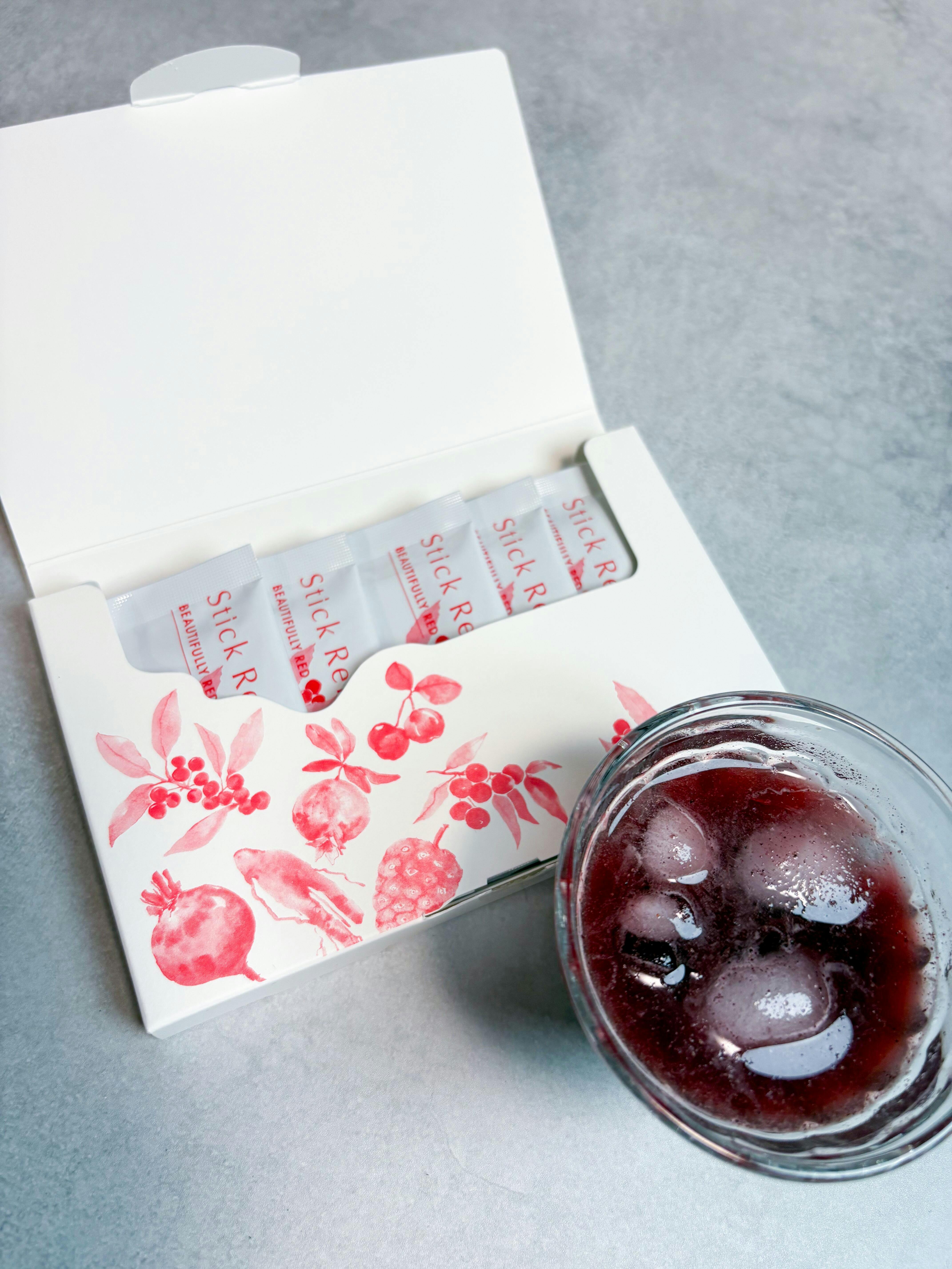 6種類の赤い果実や野菜をベースに、パフィアや白キクラゲをブレンド。アントシアニンやベタレインなどのポリフェノール、鉄分やマグネシウム、カリウム、カルシウムなどのミネラル、ビタミンCや葉酸、ビタミンB群などのビタミン、βカロテンをバランスよく含みます。美容には欠かせない栄養素と共に、日々の生活をいきいきと過ごすサポートをします。程よい酸味の爽やかな味わいです。