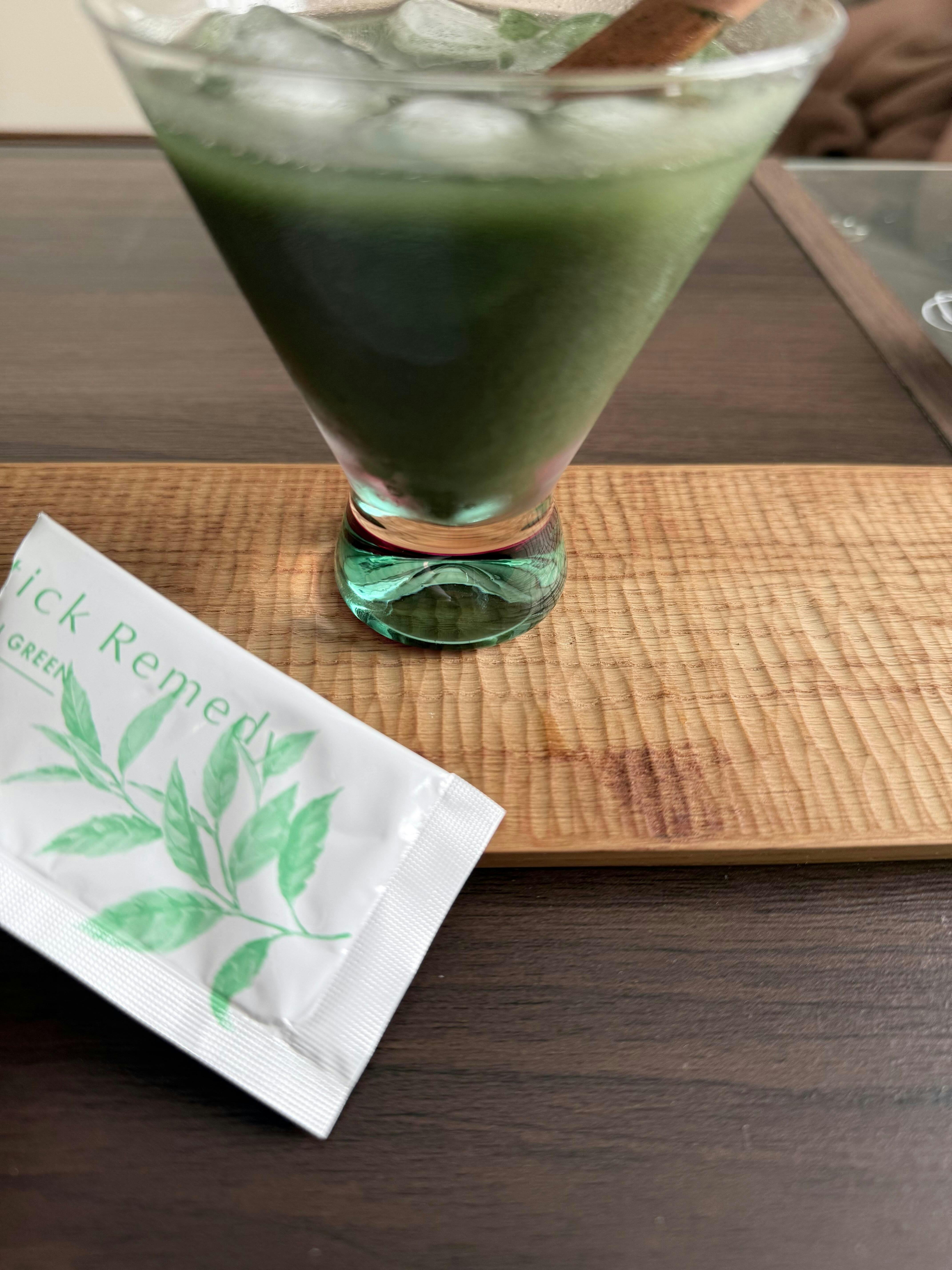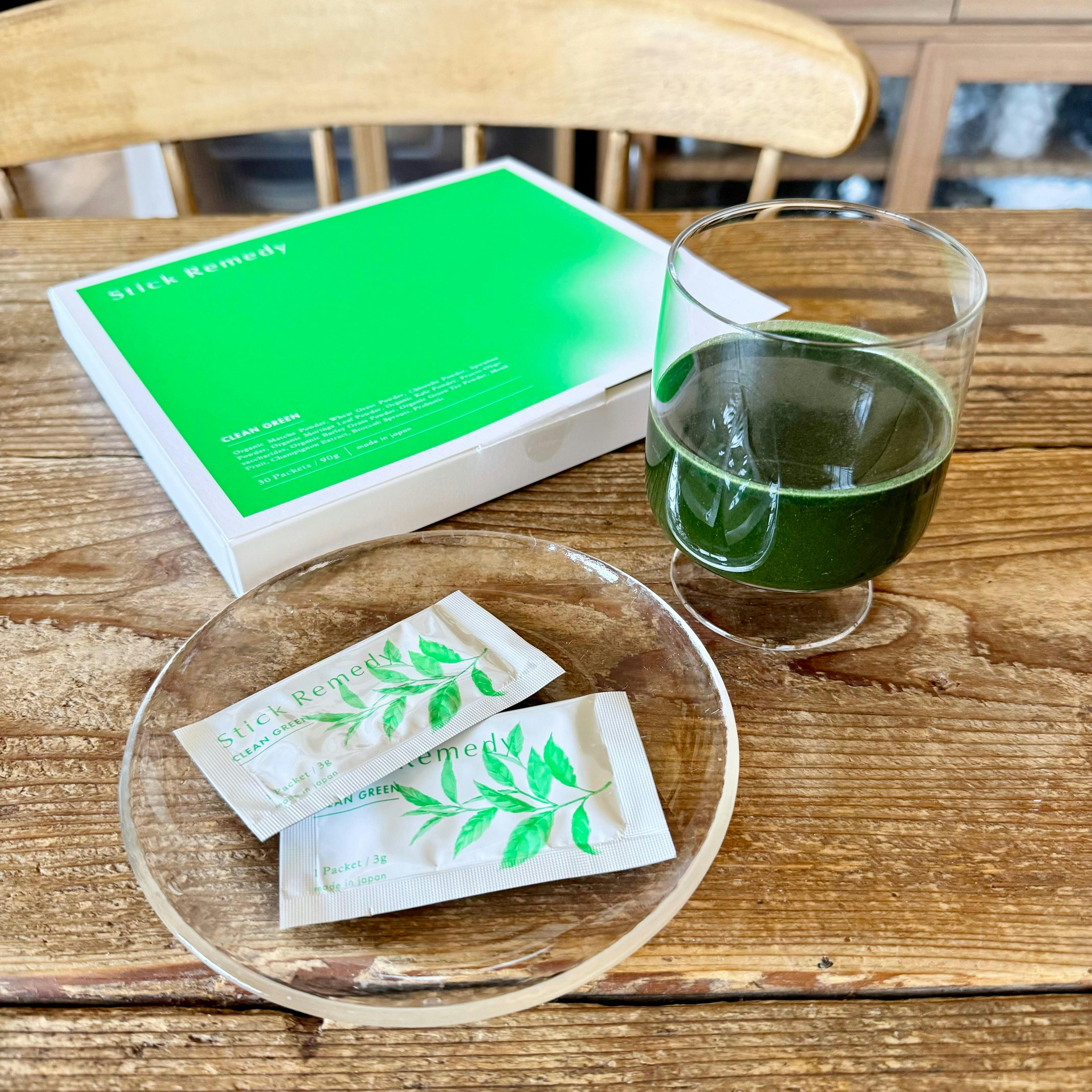 [原材料]有機抹茶(国内製造)、小麦若葉末、クロレラ原末、スピルリナ原末、有機モリンガ葉粉末、有機ケール粉末、フラクトオリゴ糖、有機大麦若葉粉末、有機緑茶粉末、羅漢果、シャンピニオンエキス、ブロッコリースプラウト、植物性乳酸菌(殺菌)