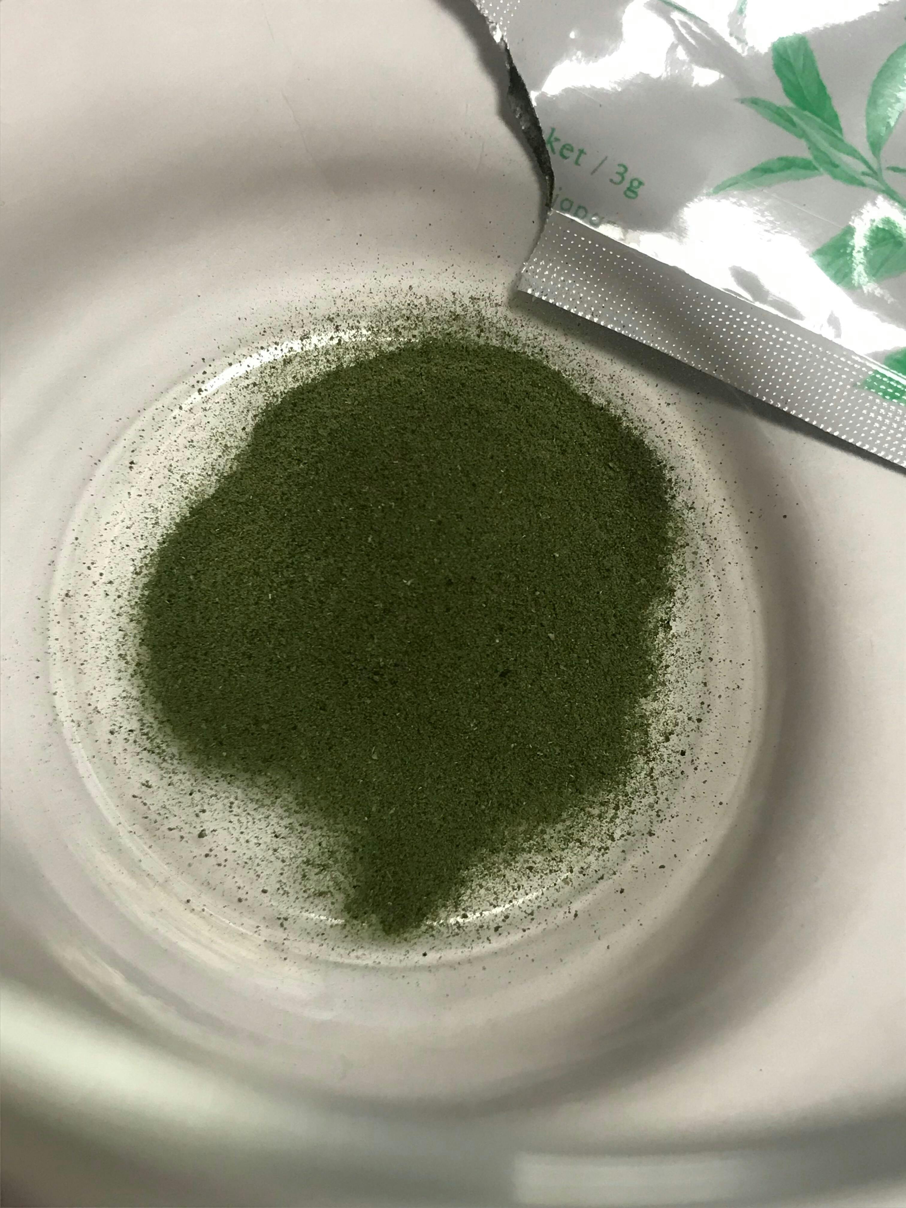 [原材料]有機抹茶(国内製造)、小麦若葉末、クロレラ原末、スピルリナ原末、有機モリンガ葉粉末、有機ケール粉末、フラクトオリゴ糖、有機大麦若葉粉末、有機緑茶粉末、羅漢果、シャンピニオンエキス、ブロッコリースプラウト、植物性乳酸菌(殺菌)